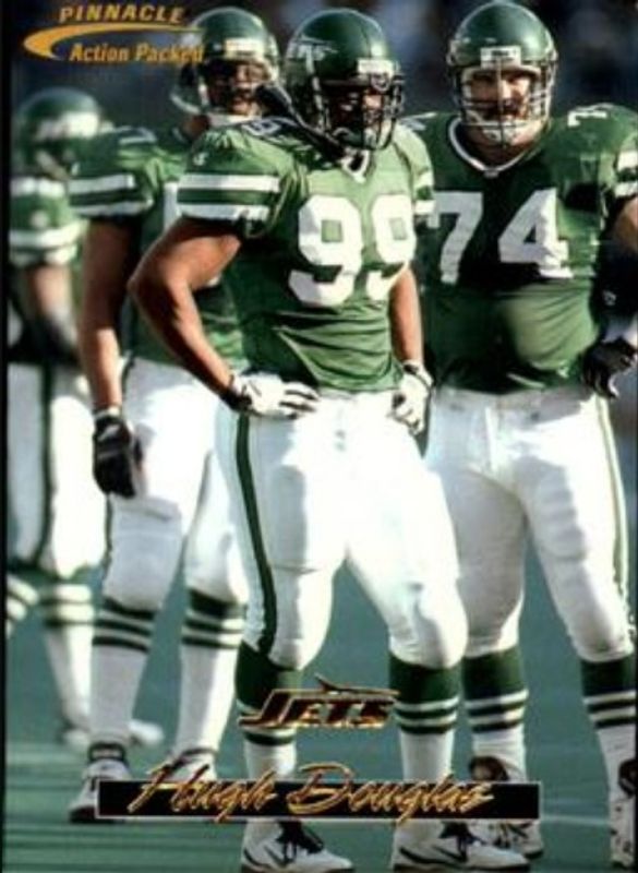 The Hugh Douglas 1996 Action Packed Flagship #24 Base card is 1 of 2 Hugh Douglas' card variations in the 1996 Action Packed Flagship set being tracked by Sports Card Investor, including Artist's Proofs.