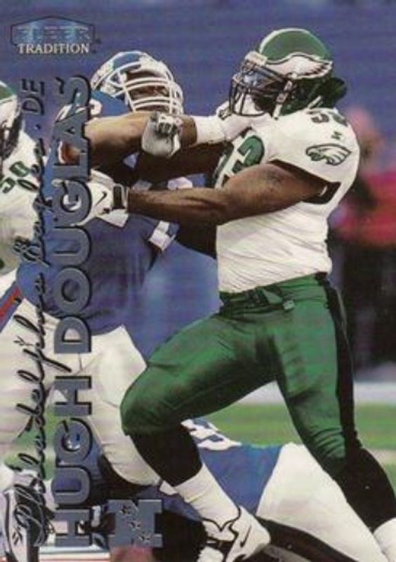 The Hugh Douglas 1999 Fleer Tradition #91 Base card is 1 of 3 Hugh Douglas' card variations in the 1999 Fleer Tradition set being tracked by Sports Card Investor, including Blitz Collection, and Trophy Collection /20.