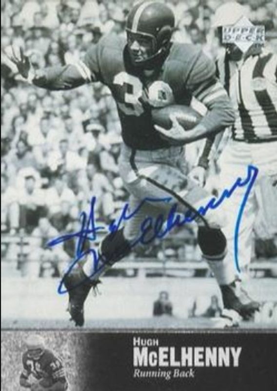 The Hugh McElhenny 1997 Upper Deck Legends #AL-33 Autographs card is 1 of 2 Hugh McElhenny's card variations in the 1997 Upper Deck Legends set being tracked by Sports Card Investor, including Base.