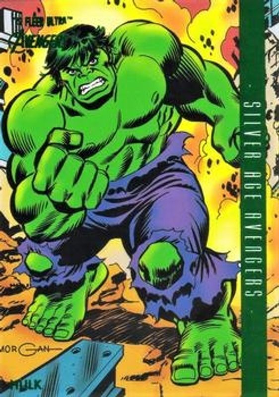 The Hulk 2022 Fleer Ultra Avengers #107 Green Foil card is 1 of 46 Hulk's card variations in the 2022 Fleer Ultra Avengers set being tracked by Sports Card Investor, including #107 Base, #30 Base, #30 Gold Rainbow Foil, #30 Green Foil, and #30 Rainbow Foil.