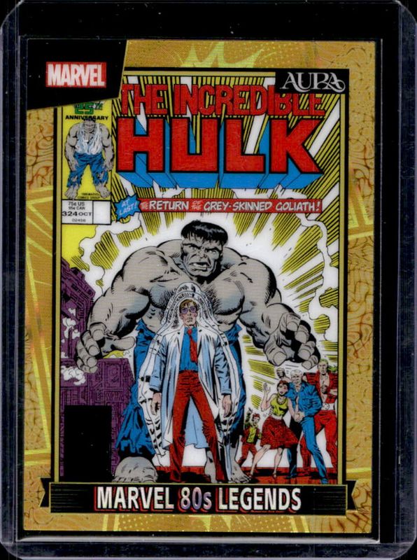 The Hulk 2025 Kakawow Aura #AM-EIG-07 Marvel 80s Legends - Gold /10 card is 1 of 57 Hulk's card variations in the 2025 Kakawow Aura set being tracked by Sports Card Investor, including Silver, Angel /390, Cyan /145, Blue /95, and Orange /75.