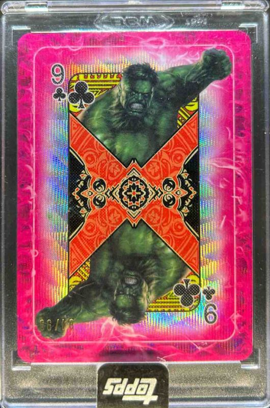 The Hulk 2025 Topps Mint #C-9 Gambit's Deck /99 card is 1 of 19 Hulk's card variations in the 2025 Topps Mint set being tracked by Sports Card Investor, including Base, Green Mint Foil /75, Gold Foil /50, Orange Foil /25, and Black Foil /10.