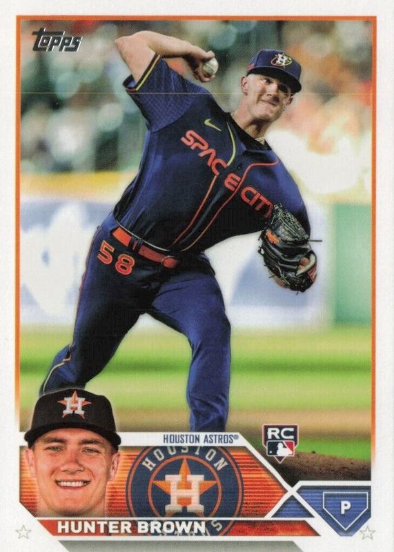 This card is 1 of 18 Hunter Brown's card variations in the 2023 Topps set being tracked by Sports Card Investor, including Base, Gold Foil, Rainbow Foil, Royal Blue, and Gold /2023.