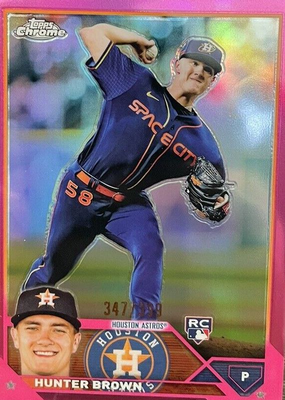 The Hunter Brown 2023 Topps Chrome #197 Magenta Refractor /399 Rookie card in Raw condition has moved up $0.28 (+3.1%) in the last 30 days and was last sold for $9.25 .