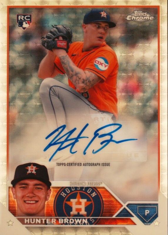 This card is 1 of 16 Hunter Brown's card variations in the 2023 Topps Chrome Update set being tracked by Sports Card Investor, including Autographs, Autographs - Black & White Mini-Diamond Refractor, Autographs - Refractor /499, Autographs - Purple Speckle Refractor /299, and Autographs - Purple Refractor /250.