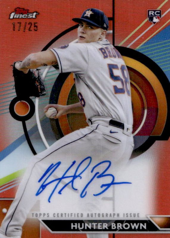Auctions Ending Soon for Hunter Brown 2023 Topps Finest #FA-HB Finest Autographs - Orange Refractor /25 Rookie RAW