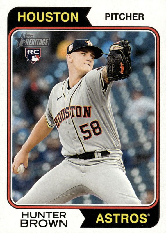 This card is 1 of 3 Hunter Brown's card variations in the 2023 Topps Heritage set being tracked by Sports Card Investor, including Real One Autographs, and Real One Autographs - Red Ink /74.
