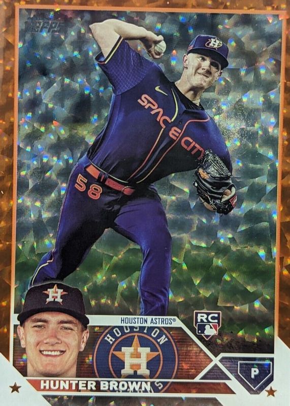 This card is 1 of 18 Hunter Brown's card variations in the 2023 Topps set being tracked by Sports Card Investor, including Base, Gold Foil, Rainbow Foil, Royal Blue, and Gold /2023.