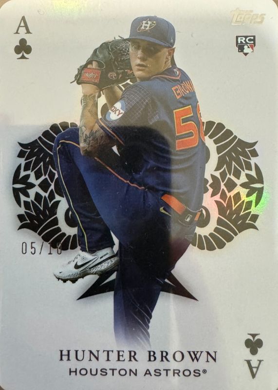 The Hunter Brown 2023 Topps Update #AA-56 All Aces - Red /10 Rookie card in Raw condition has not changed in price in the last 30 days and was last sold for $55.00 .