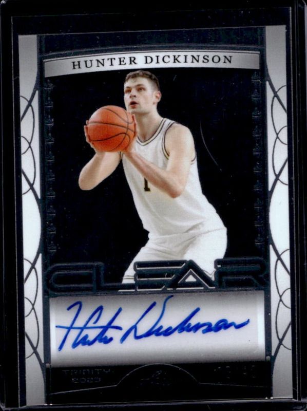 The Hunter Dickinson 2022 Leaf Trinity #CA-HD1 Clear Auto - Silver /49 card is 1 of 34 Hunter Dickinson's card variations in the 2022 Leaf Trinity set being tracked by Sports Card Investor, including Base /49, Gold /35, Blue /30, Holo Platinum /25, and Holo Green /20.