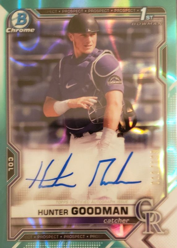 2021 Bowman Chrome 1st HUNTER GOODMAN AUTO Aqua Lava /199 #CDA-HG Rockies
