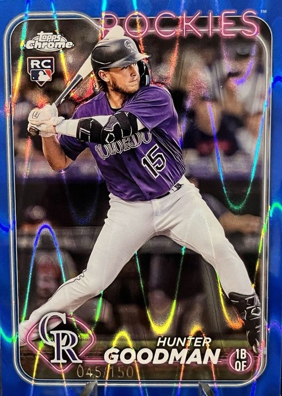 2024 Topps Chrome Hunter Goodman #99 RC Blue RayWave Refractor #'d /150 Rockies