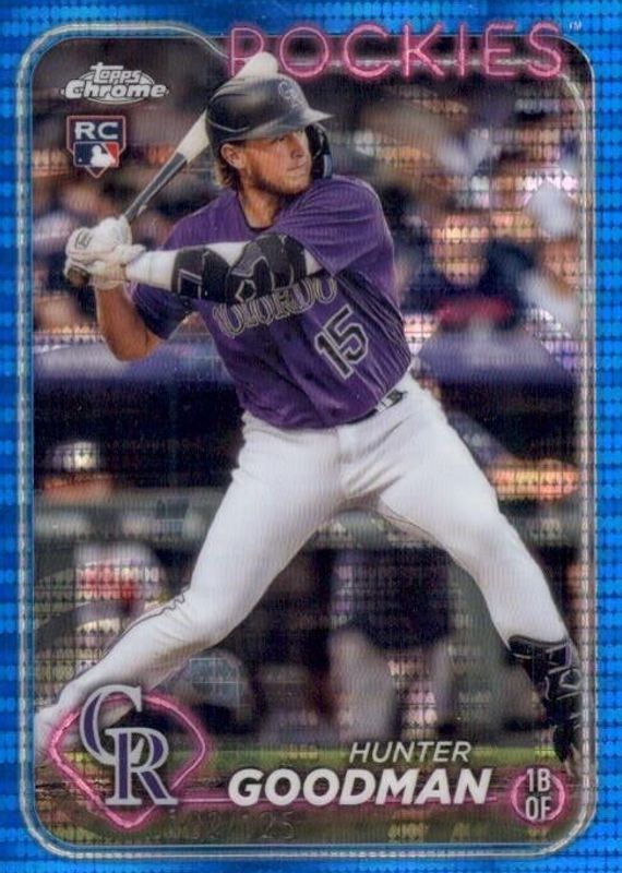 This card is 1 of 59 Hunter Goodman's card variations in the 2024 Topps Chrome set being tracked by Sports Card Investor, including Base, Negative Refractor, Pink Refractor, Prism Refractor, and RayWave Refractor.