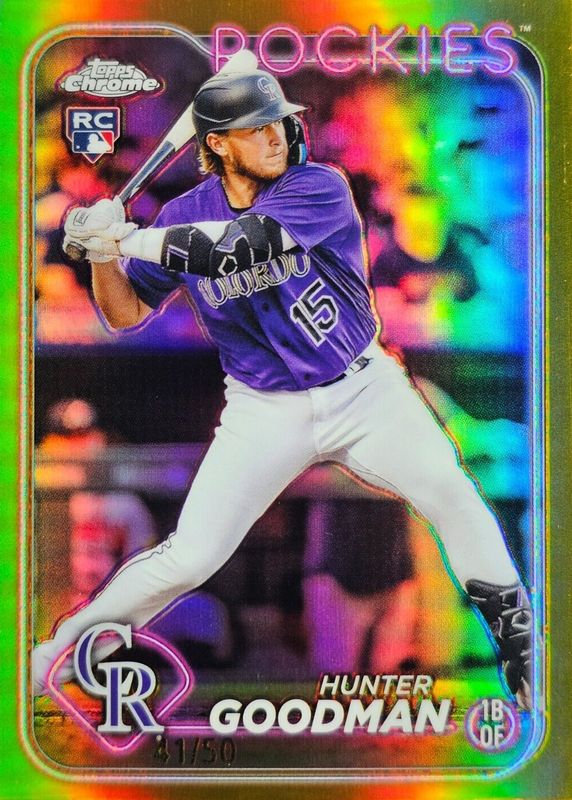 This card is 1 of 59 Hunter Goodman's card variations in the 2024 Topps Chrome set being tracked by Sports Card Investor, including Base, Negative Refractor, Pink Refractor, Prism Refractor, and RayWave Refractor.