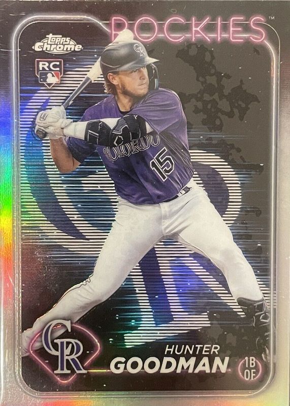 This card is 1 of 59 Hunter Goodman's card variations in the 2024 Topps Chrome set being tracked by Sports Card Investor, including Base, Negative Refractor, Pink Refractor, Prism Refractor, and RayWave Refractor.