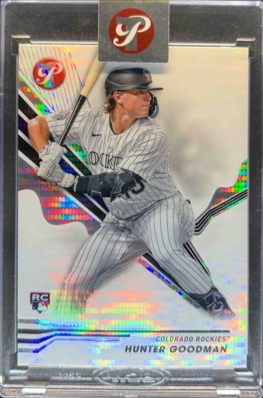 The Hunter Goodman 2024 Topps Pristine #40 Pristine Refractor Rookie card is 1 of 26 Hunter Goodman's card variations in the 2024 Topps Pristine set being tracked by Sports Card Investor, including Base, Refractor, Green Refractor /150, Pristine Purple Refractor /99, and Purple Refractor /99.