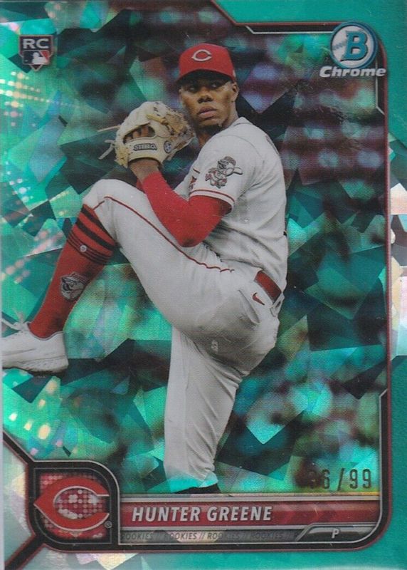 2022 Bowman Chrome Sapphire Hunter Greene Aqua RC #/99 #95 Reds