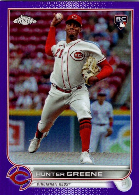 The Hunter Greene 2022 Topps Chrome Update #USC191 Purple Refractor Rookie card in Raw condition has moved up $1.01 (+33.8%) in the last 30 days and was last sold for $4.00 .