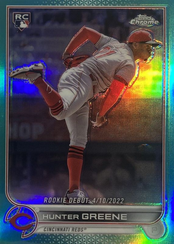 HUNTER GREENE 2022 TOPPS CHROME UPDATE ROOKIE DEBUT AQUA REFRACTOR S/P #04/250