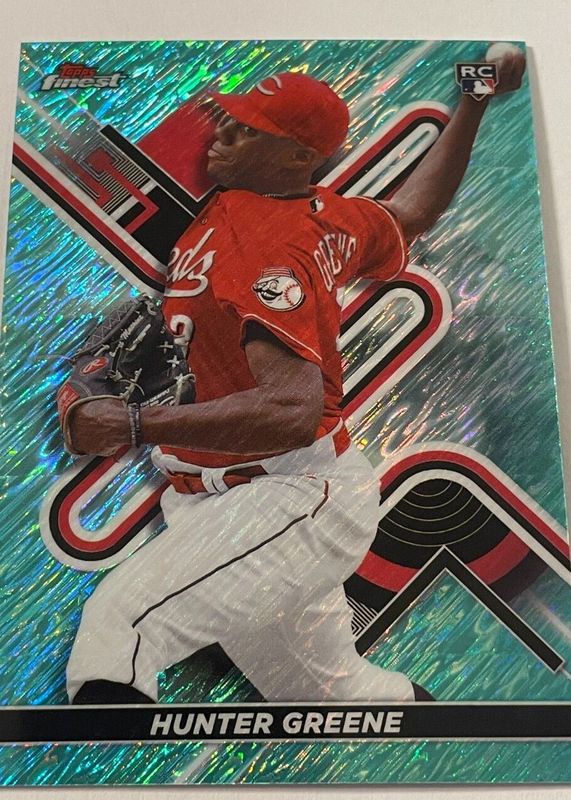 The Hunter Greene 2022 Topps Finest #69 Aqua Shimmer Refractor /175 Rookie card in Raw condition has not changed in price in the last 30 days and was last sold for $3.00 .