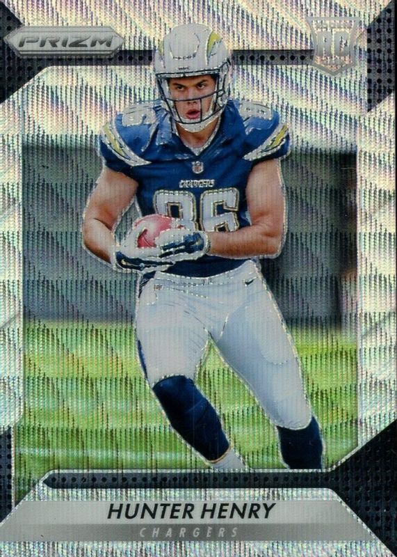 This card is 1 of 32 Hunter Henry's card variations in the 2016 Prizm set being tracked by Sports Card Investor, including Flash, Green, Pink, Red White Blue Disco, and Silver.