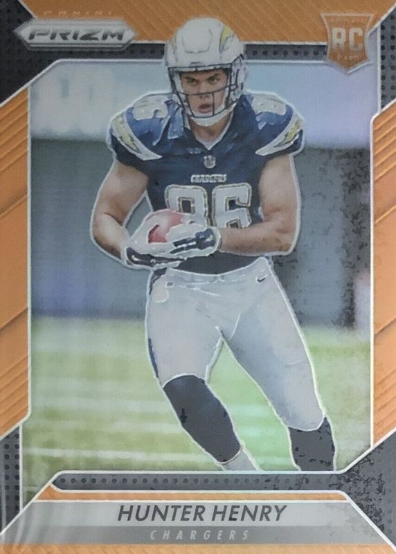 The Hunter Henry 2016 Prizm #262 Orange /299 Rookie card in Raw condition has moved up $6.99 (+140%) in the last 30 days and was last sold for $11.99 .