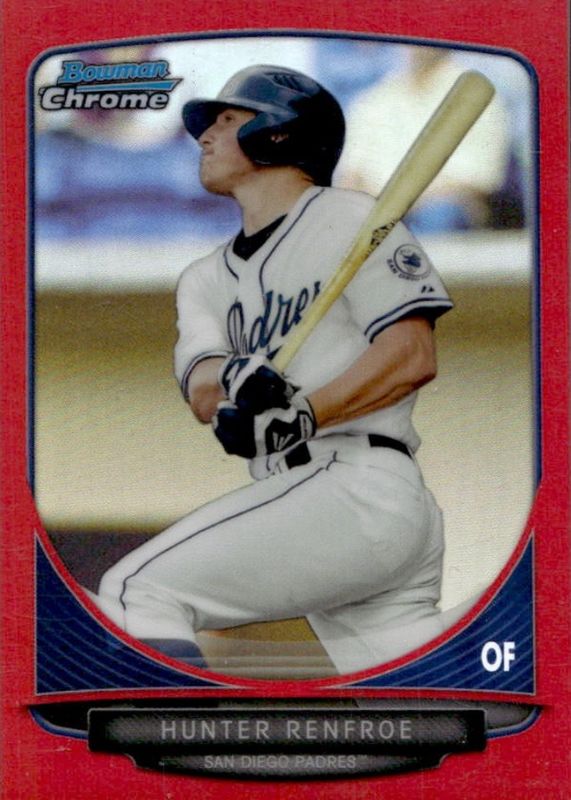 The Hunter Renfroe 2013 Bowman Draft #BDPP16 Chrome Draft Picks - Red Refractor /5 card in Raw condition has not changed in price in the last 30 days and was last sold for $27.99 .