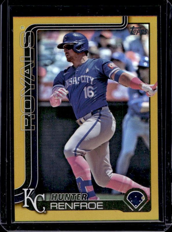 The Hunter Renfroe 2025 Topps #598 Gold Rainbow /50 card is 1 of 55 Hunter Renfroe's card variations in the 2025 Topps set being tracked by Sports Card Investor, including Base, Aqua Holo Foil, Diamante Foil, Holo Foil, and Pink Diamante Foil.