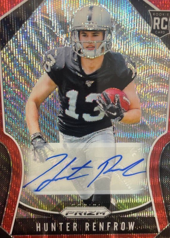 The Hunter Renfrow 2019 Prizm #357 Rookie Autographs - Red Wave /149 card in Raw condition has not changed in price in the last 30 days and was last sold for $16.20 .