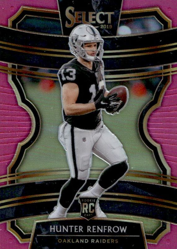 The Hunter Renfrow 2019 Select #33 Concourse Pink /10 Rookie card in Raw condition has not changed in price in the last 30 days and was last sold for $13.63 .
