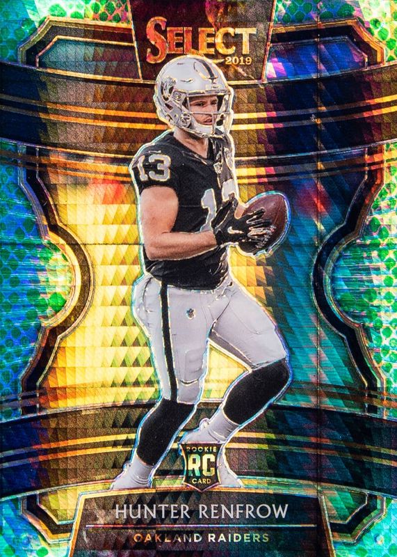 This card is 1 of 35 Hunter Renfrow's card variations in the 2019 Select set being tracked by Sports Card Investor, including Concourse, Field Level, Concourse Silver, Field Level Silver, and Concourse Tri-Color /199.