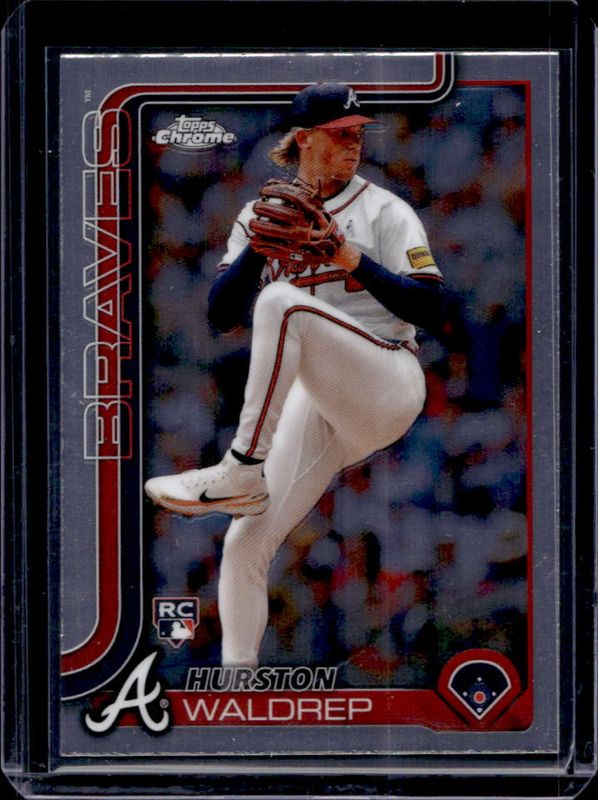 The Hurston Waldrep 2025 Topps Chrome #90 Base Rookie card is 1 of 80 Hurston Waldrep's card variations in the 2025 Topps Chrome set being tracked by Sports Card Investor, including Geometric Refractor, Lightboard Logo Variation, Negative Refractor, Prism Refractor, and RayWave Refractor.