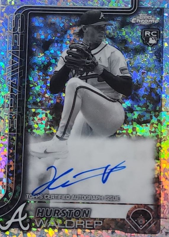 This card is 1 of 80 Hurston Waldrep's card variations in the 2025 Topps Chrome set being tracked by Sports Card Investor, including Base, Geometric Refractor, Lightboard Logo Variation, Negative Refractor, and Prism Refractor.
