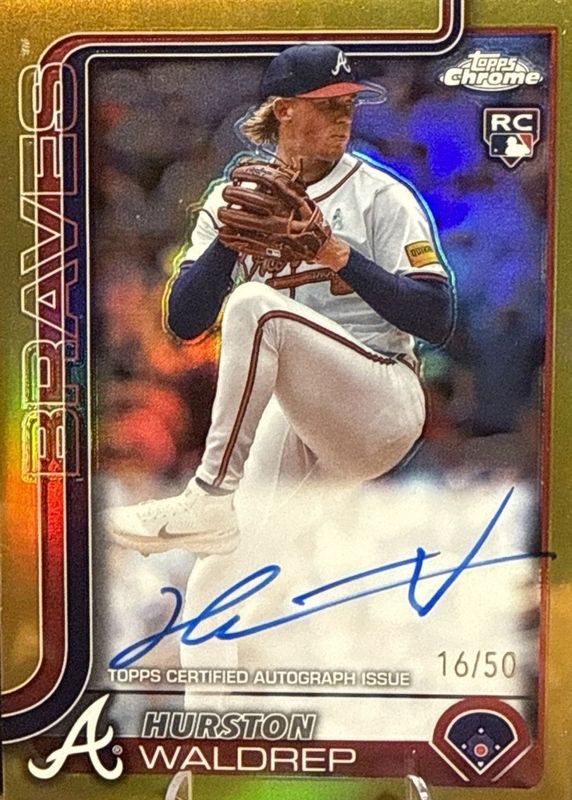 Hurston Waldrep 2025 Topps Chrome Gold Refractor Rookie Autograph 33/50 Braves