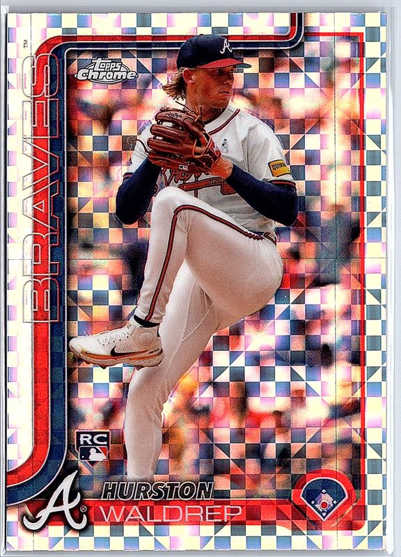 The Hurston Waldrep 2025 Topps Chrome #90 X-Fractor Rookie card is 1 of 80 Hurston Waldrep's card variations in the 2025 Topps Chrome set being tracked by Sports Card Investor, including Base, Geometric Refractor, Lightboard Logo Variation, Negative Refractor, and Prism Refractor.