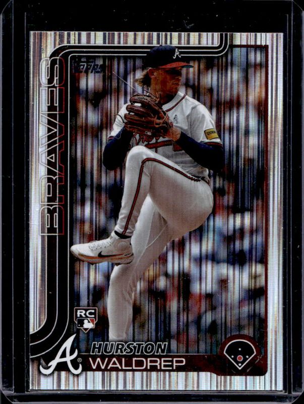 The Hurston Waldrep 2025 Topps #253 Meijer Tin Variation Rookie card is 1 of 130 Hurston Waldrep's card variations in the 2025 Topps set being tracked by Sports Card Investor, including Base, Aqua Holo Foil, Aqua Rainbow, Diamante Foil, and Eggs.
