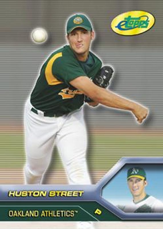 The Huston Street 2005 eTopps #203 Base card is 1 of 2 Huston Street's card variations in the 2005 eTopps set being tracked by Sports Card Investor, including Certificate of Issuance.