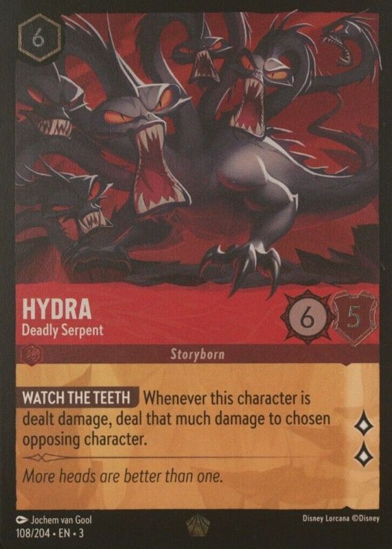 The Hydra - Deadly Serpent 2024 Into the Inklands #108/204 Cold Foil card in Raw TCG (Near Mint) condition has not changed in price in the last 30 days and was last sold for $4.95 .