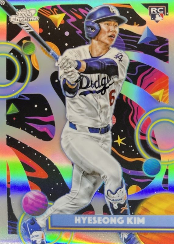 The Hyeseong Kim 2025 Topps Chrome Cosmic #181 Refractor Rookie card in Raw condition has moved down -$0.51 (-5.7%) in the last 30 days and was last sold for $8.49 .