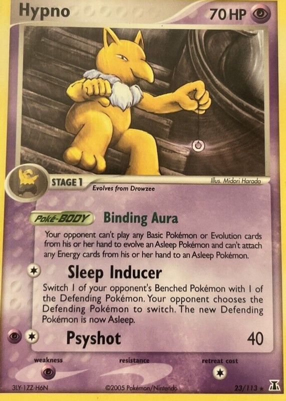The Hypno 2005 EX: Delta Species #023/113 Base card in Raw TCG (Near Mint) condition has not changed in price in the last 30 days and was last sold for $1.61 .