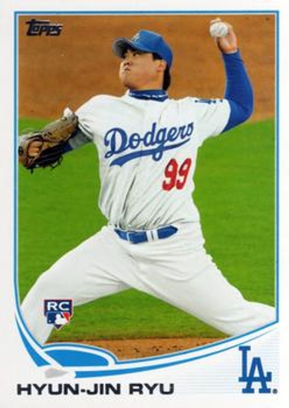 The Hyun-Jin Ryu 2013 Topps #661a Base Rookie card is 1 of 23 Hyun-Jin Ryu's card variations in the 2013 Topps set being tracked by Sports Card Investor, including Base, Factory Set Bonus: Rookie Variations, Autographs /52, Silk Collection /50, and Making Their Mark Autographs Relics /25.
