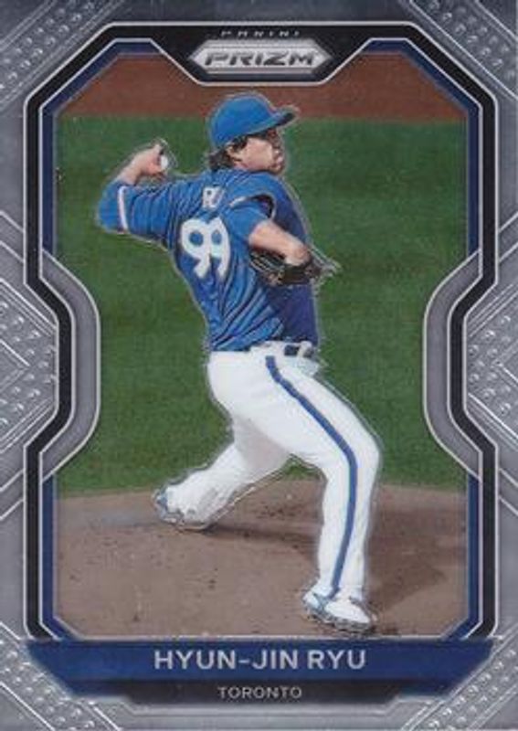 The Hyun-Jin Ryu 2021 Prizm #233 Base card is 1 of 43 Hyun-Jin Ryu's card variations in the 2021 Prizm set being tracked by Sports Card Investor, including Blue, Blue Velocity, Carolina Blue, Cosmic Haze, and Giraffe.