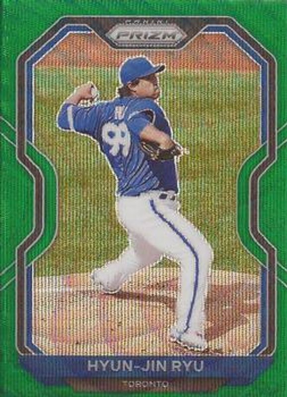 The Hyun-Jin Ryu 2021 Prizm #233 Green Wave card is 1 of 43 Hyun-Jin Ryu's card variations in the 2021 Prizm set being tracked by Sports Card Investor, including Base, Blue, Blue Velocity, Carolina Blue, and Cosmic Haze.