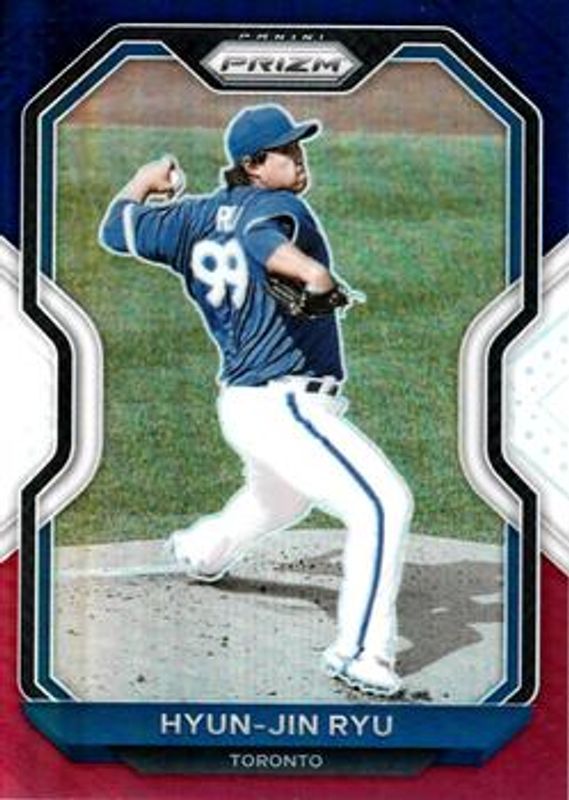 The Hyun-Jin Ryu 2021 Prizm #233 Red White Blue card is 1 of 43 Hyun-Jin Ryu's card variations in the 2021 Prizm set being tracked by Sports Card Investor, including Base, Blue, Blue Velocity, Carolina Blue, and Cosmic Haze.