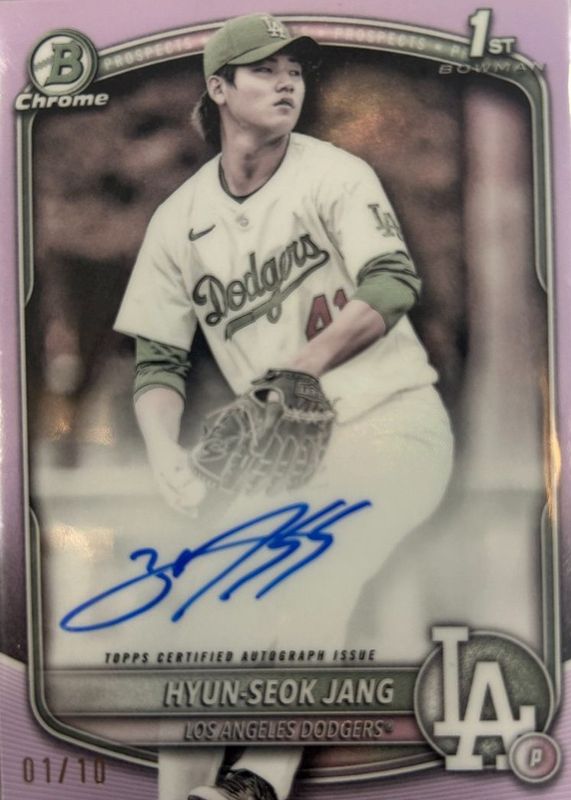 Auctions Ending Soon for Hyun-Seok Jang 2025 Bowman #CPA-HJ Chrome Prospect Auto - Pearl Refractor /10 (1st) RAW