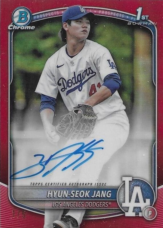 Auctions Ending Soon for Hyun-Seok Jang 2025 Bowman #CPA-HJ Chrome Prospect Auto - Red Refractor /5 (1st) RAW