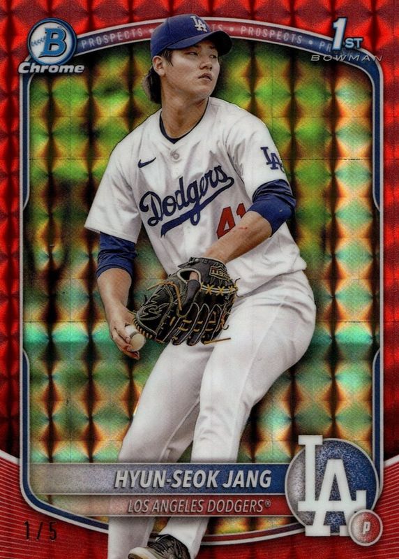 Hyun-Seok Jang 2025 Bowman #BCP-51 Chrome Prospects - Red Geometric Refractor /5 (1st) RAW Price Guide