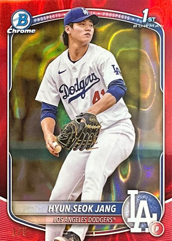Hyun-Seok Jang 2025 Bowman #BCP-51 Chrome Prospects - Red Lava Refractor /5 (1st) RAW Price Guide