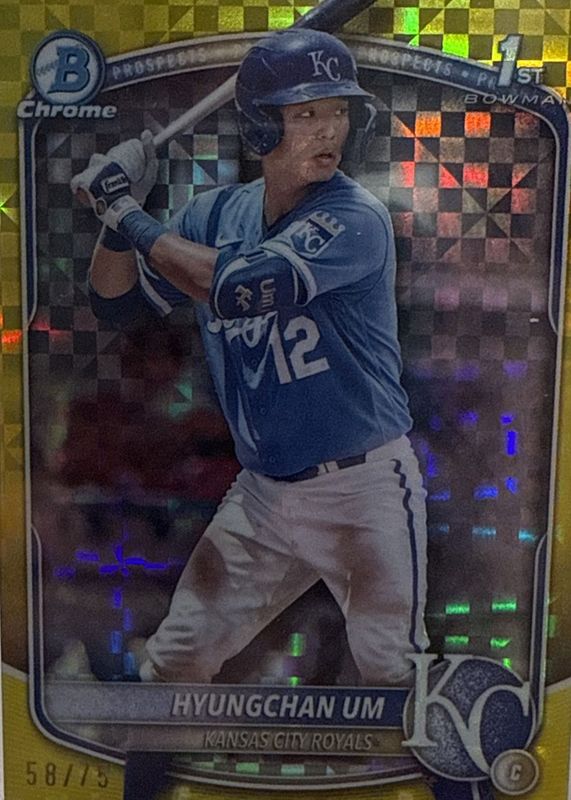 Recent Sales of Hyun-Seok Jang 2025 Bowman #BCP-51 Chrome Prospects - Yellow Geometric Refractor /75 (1st) Raw