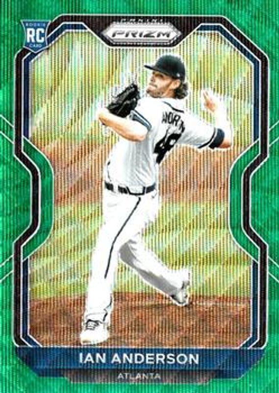 The Ian Anderson 2021 Prizm #82 Green Wave Rookie card is 1 of 75 Ian Anderson's card variations in the 2021 Prizm set being tracked by Sports Card Investor, including Base, Blue, Blue Velocity, Carolina Blue, and Cosmic Haze.